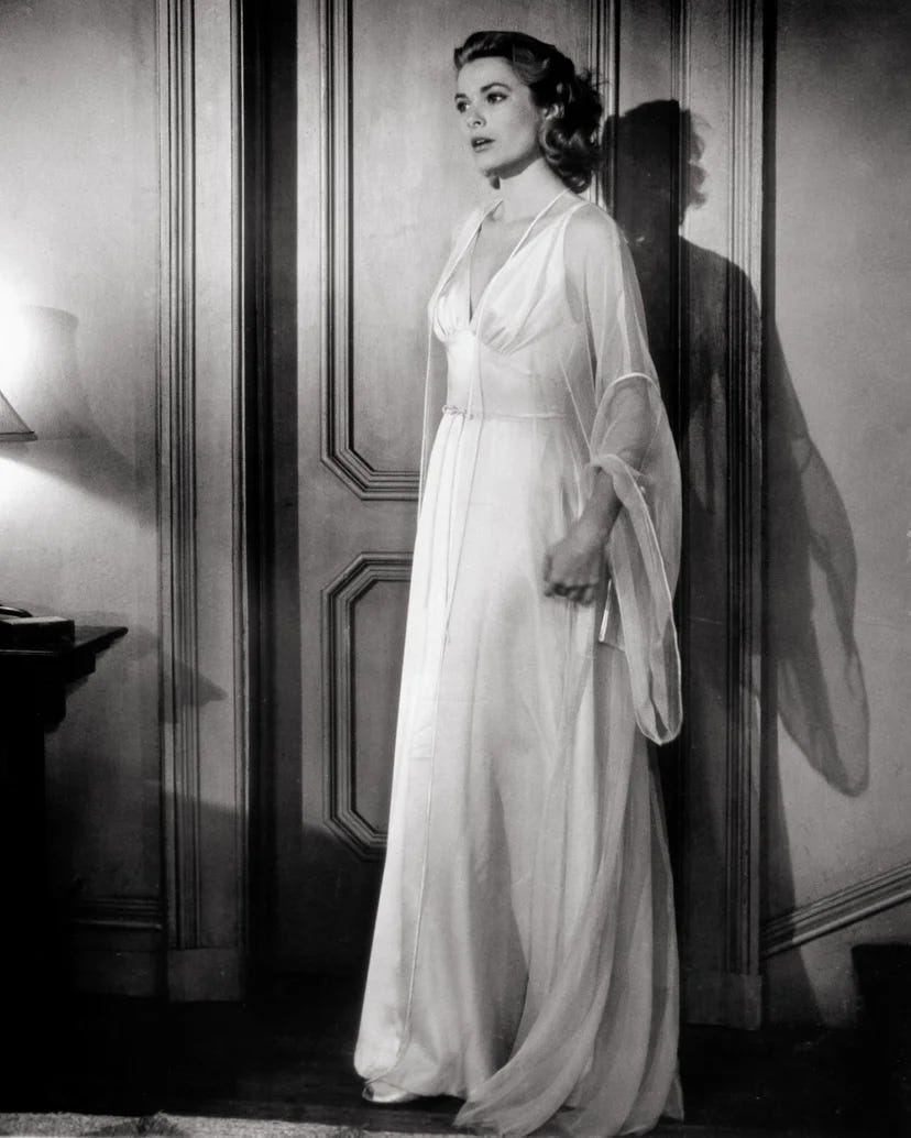 Now let me say I do like a Prada style pajama look in silk. Pajamas worn outside the house, well I love this idea with the correct execution. But I started to think about what are my ideal pajamas and why not try to make them myself for a store holiday project. I wanted to do something different with this post and open up my chat and comments below for people’s opinions on pajamas. I started looking at some old references, Grace Kelly’s dressing gown in Dial M for Murder and siren nightgown in Rear Window and Audrey Hepburn in a long nightshirt in Breakfast at Tiffany’s.